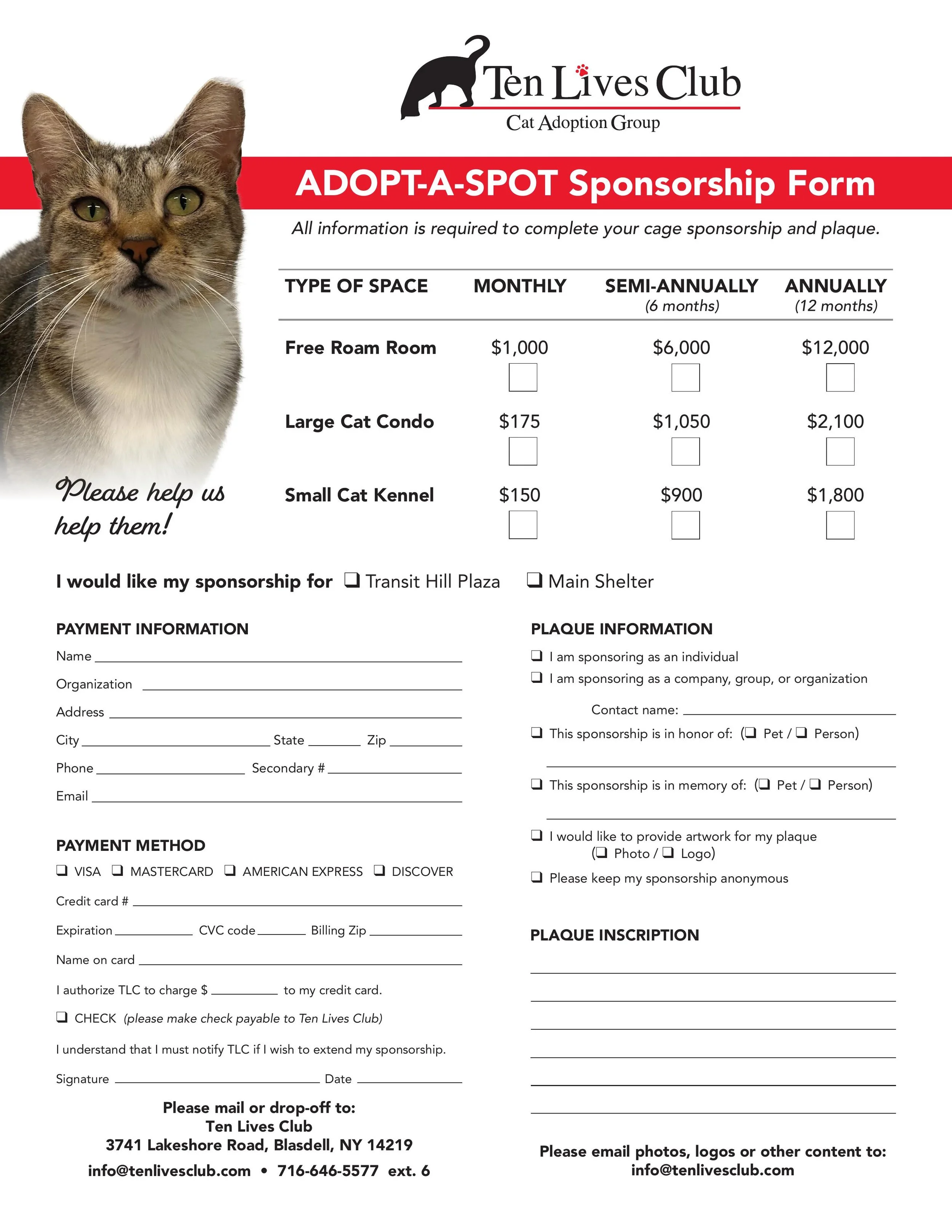 You can choose exactly which room or kennel you’d like to sponsor and which Ten Lives Club location it’s at. There are so many meaningful ways to sponsor a spot: