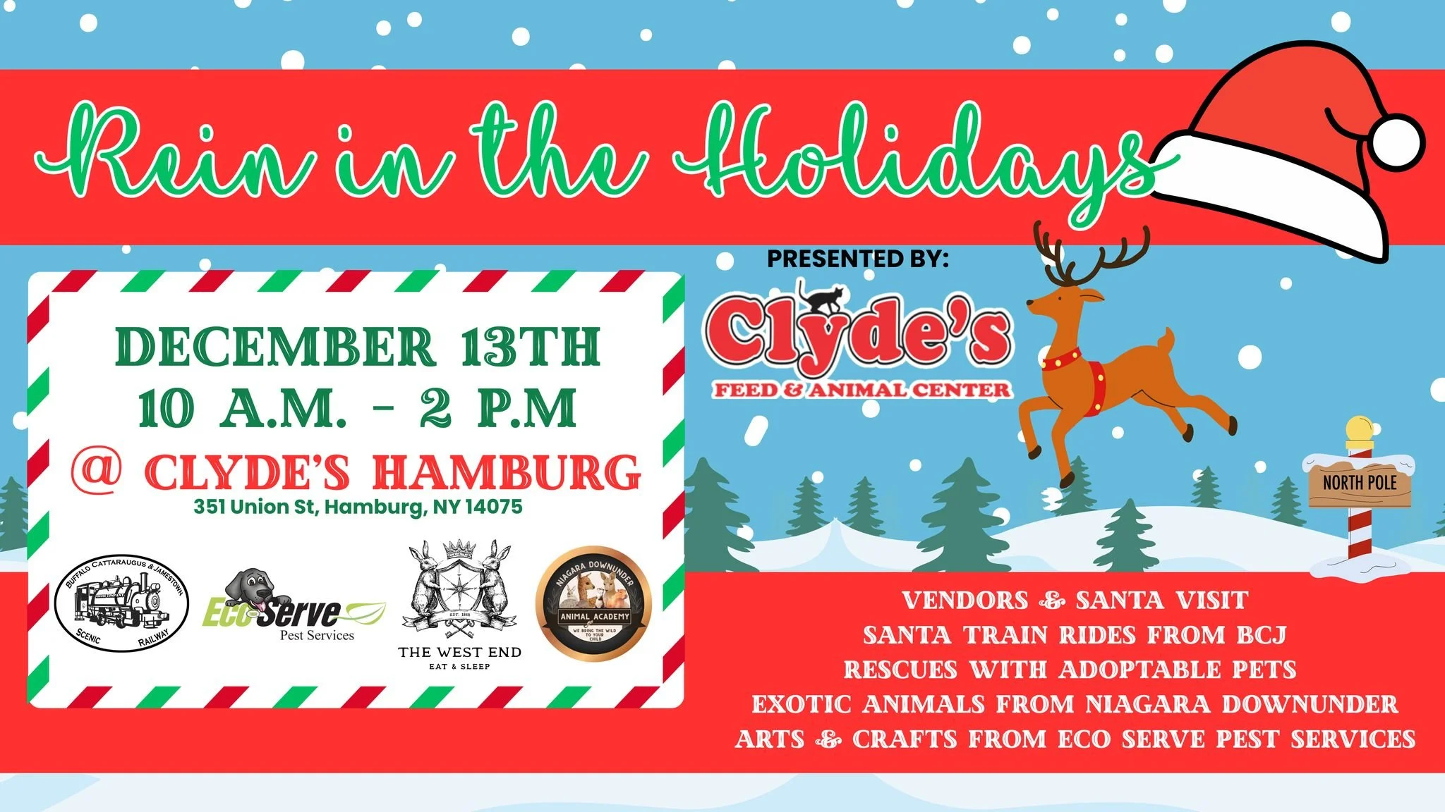 Enjoy vendors & Santa visit, Santa train rides from BCJ Rescues with adoptable pets, exotic animals from Niagara Downunder, and arts and crafts from ECO Serve Pest Services!!