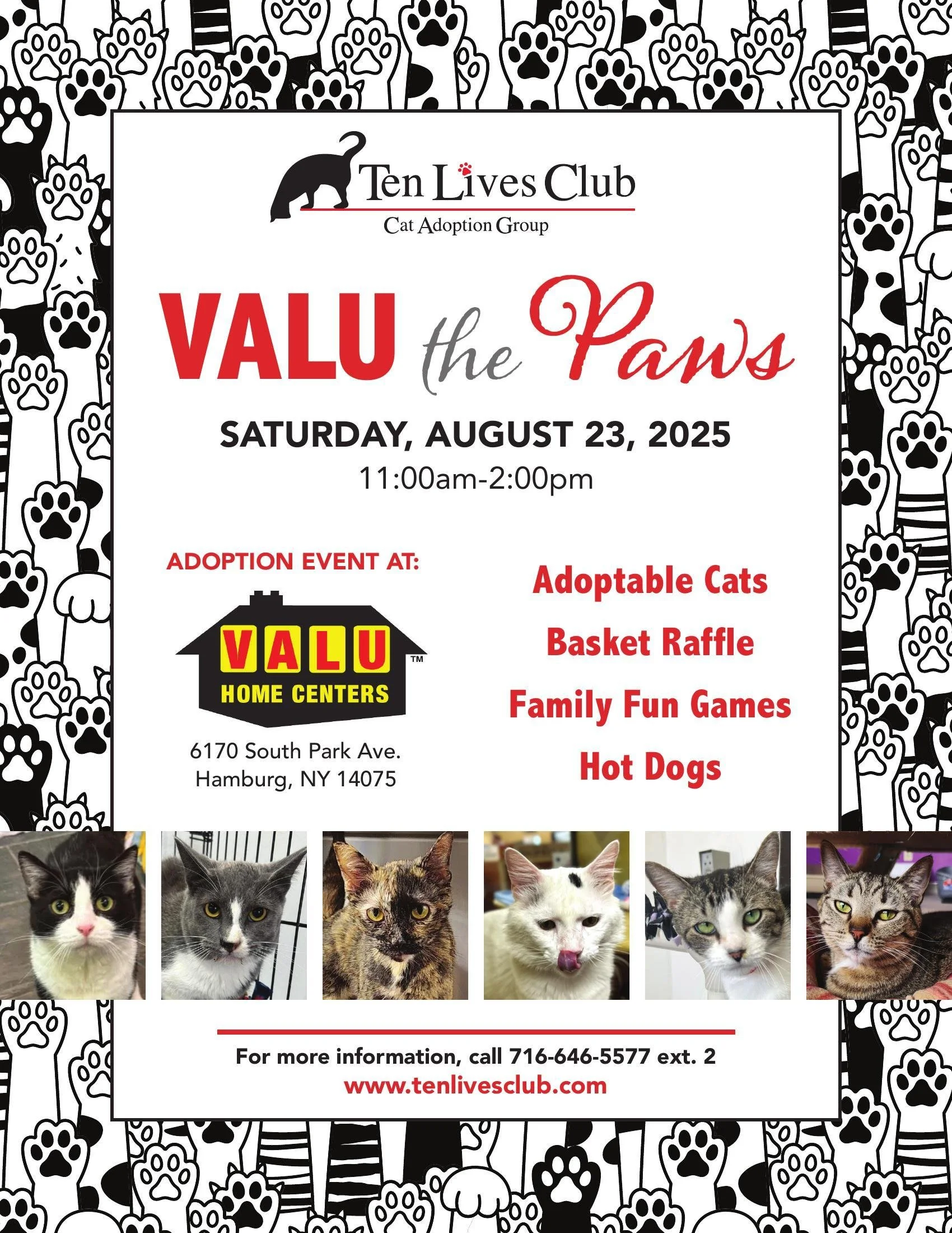 Join Ten Lives Club on Saturday, August 23 | 11AM–2PM @ Valu Home Center, 6170 South Park Ave., Hamburg, NY!
