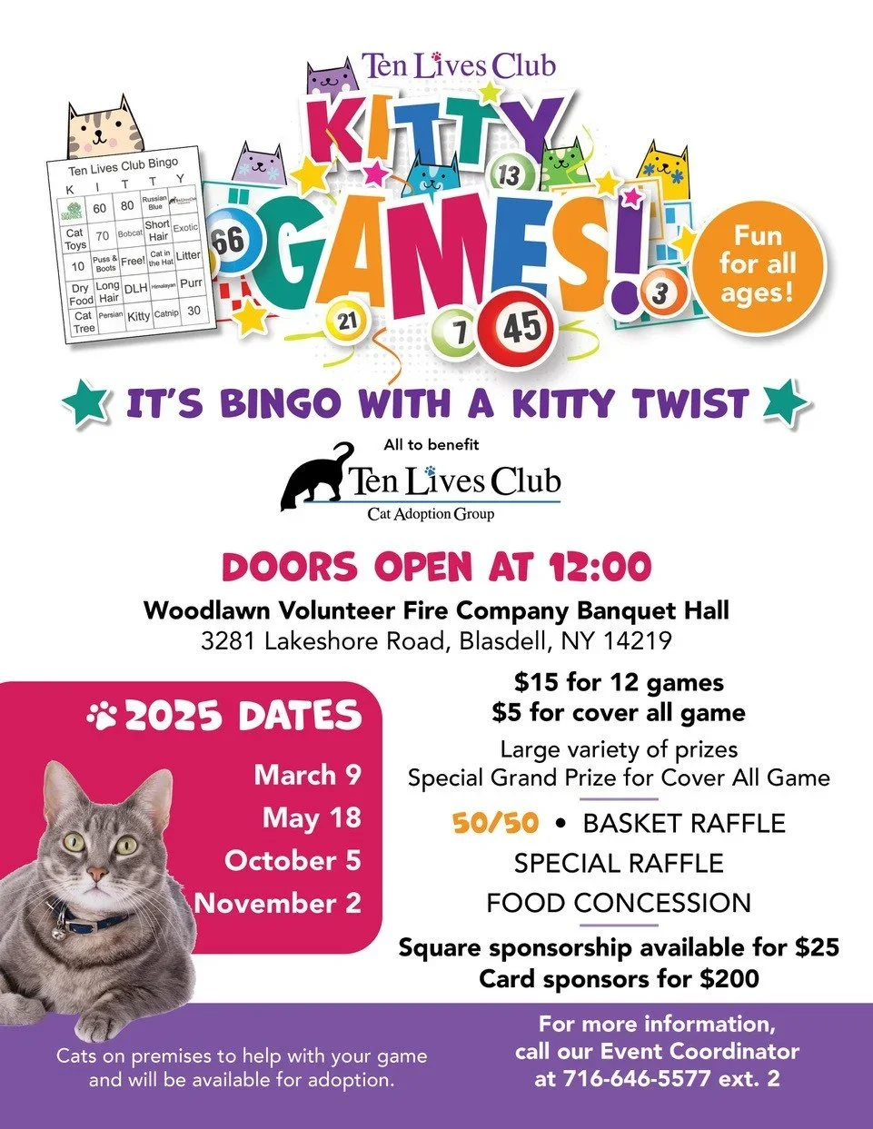 For just $25, you can sponsor your kitty on a square at our next Kitty Bingo on November 2nd 2025!